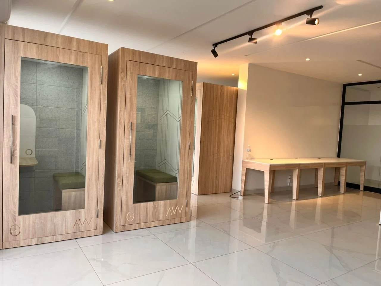 Aménagement d’Open Space avec 6 cabines acoustiques sur-mésure, ainsi qu’une salle de réunion